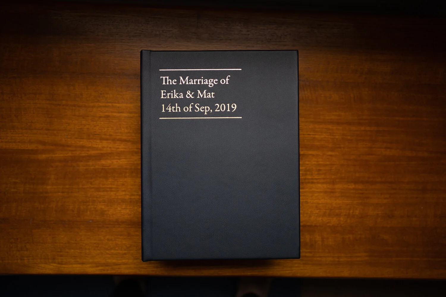 Erika and Matt: Fabric - Black vegan leather Embossing - Gold